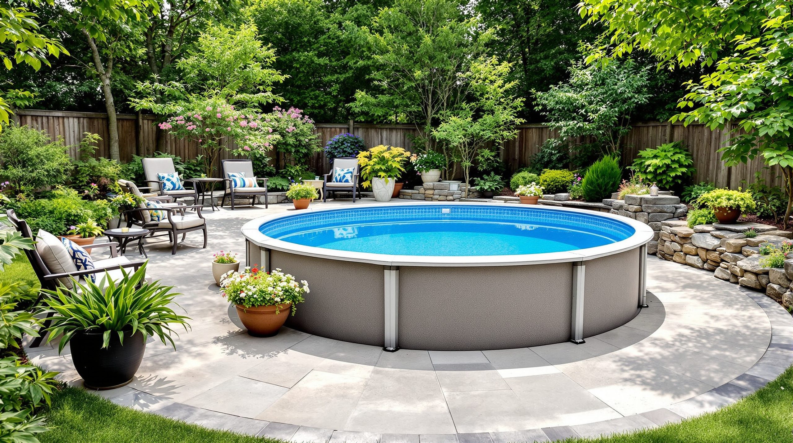 Le choix des matériaux pour l’habillage de votre piscine hors sol ronde joue un rôle essentiel dans son intégration au jardin. Les terrasses en bois, par exemple, apportent une touche naturelle et chaleureuse, tout en masquant le liner et les structures métalliques. Comptez entre 50 et 150 euros le mètre carré pour un bon choix de bois traité. Les options en composite, plus durables, peuvent varier de 70 à 200 euros le mètre carré. En ce qui concerne le prix de pose de margelle piscine, il est crucial de le prendre en compte lors de l’aménagement de votre espace.